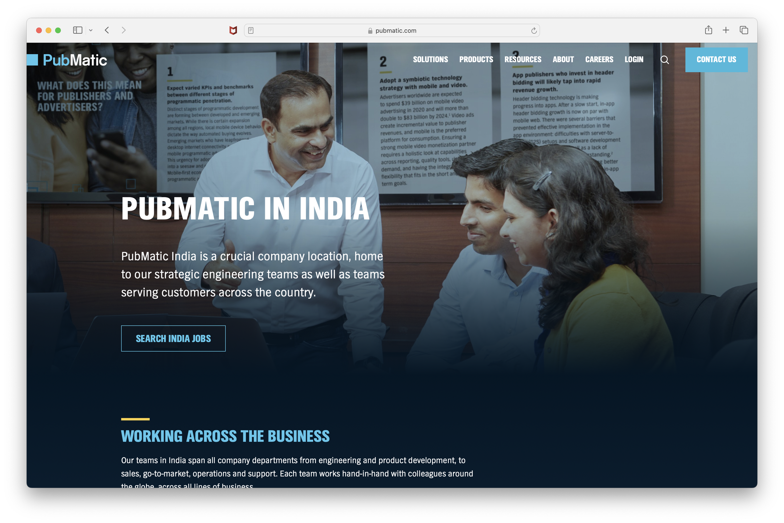 The Careers site is the digital home of PubMatic's employer brand, and it was redesigned to earn that role. Modeled on best-in-class employer sites and built around four pillars: Global Careers, India, Engineering, Diversity Equity & Inclusion, and Life @ PubMatic.