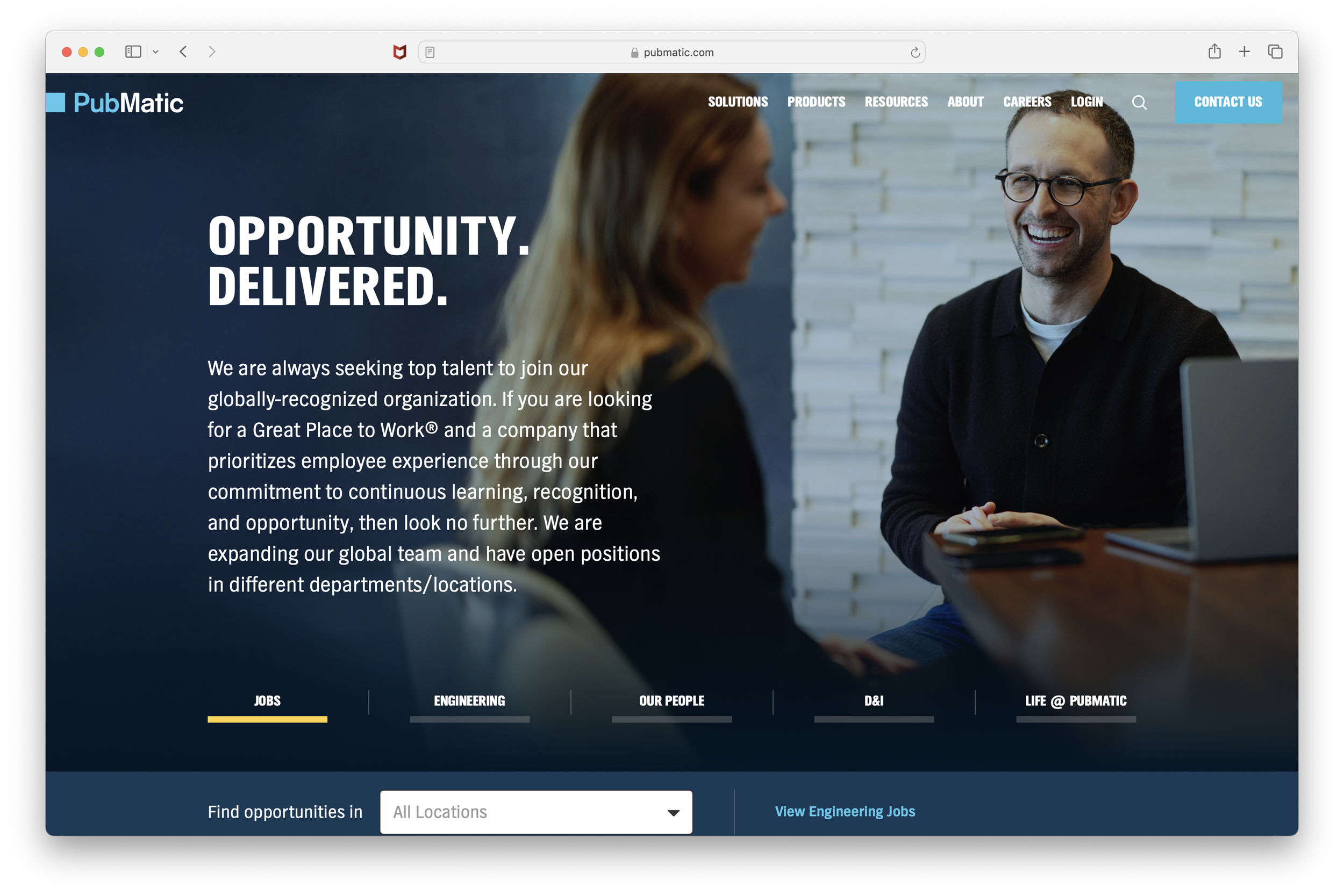 Top-performing web destination: The Careers site is PubMatic's top-viewed and most-searched set of pages — making it the highest-traffic expression of the employer brand on the entire site.