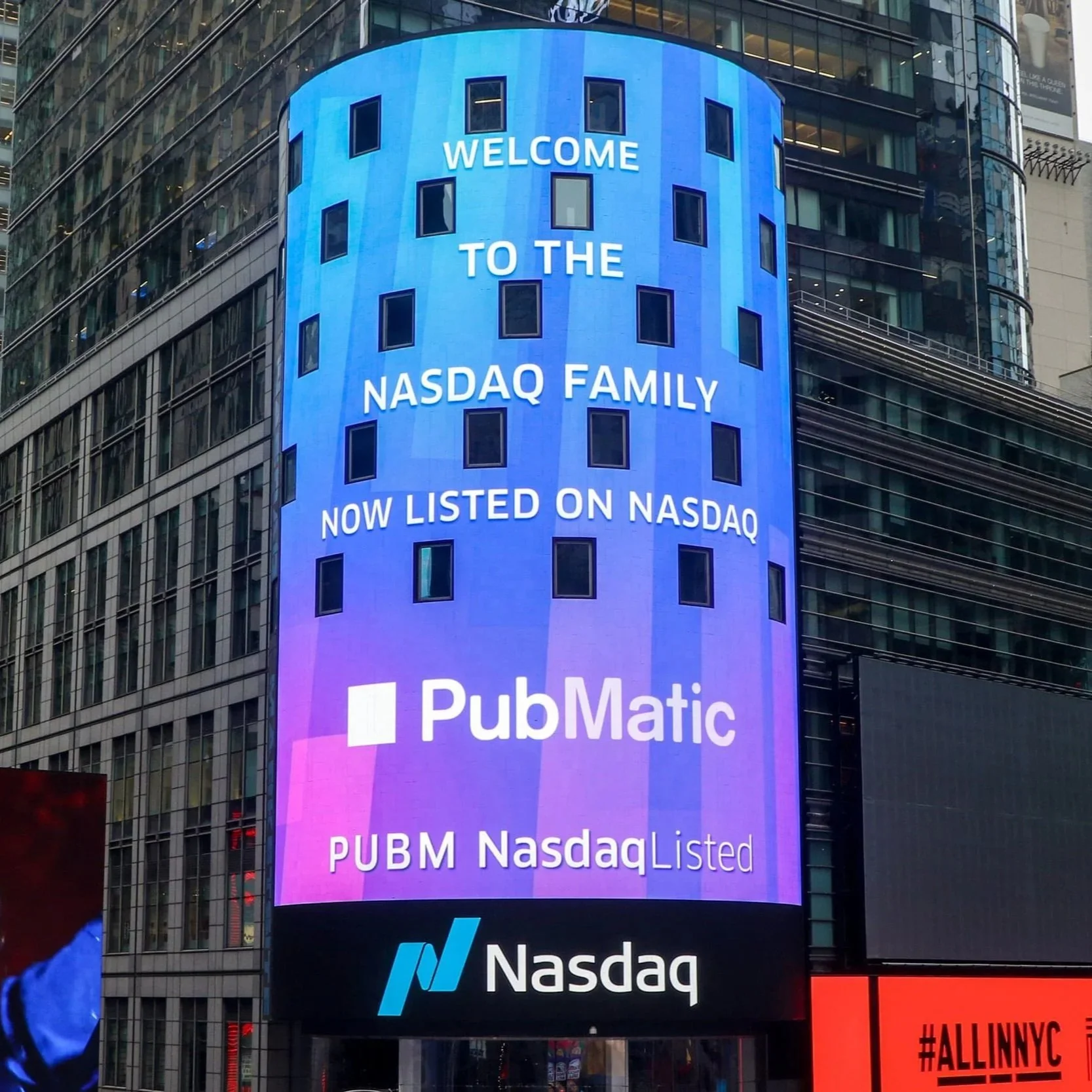 Every employee got their Times Square moment: Fully remote, fully global — and every single PubMatic employee received a branded Nasdaq Tower photo as a personal memento of the day the company went public. That one mattered.