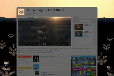 The way Honda Insight – Let It Shine video interacts with its Vimeo surrounding is superb. You have to watch and enjoy the creativity. Thinking outside the box indeed. Love the sun glare at the end.