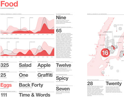 Nicholas Felton frequently designs information graphics for numerous corporations and publications. His work has been profiled in publications including the Wall Street Journal, Wired and Creative Review.