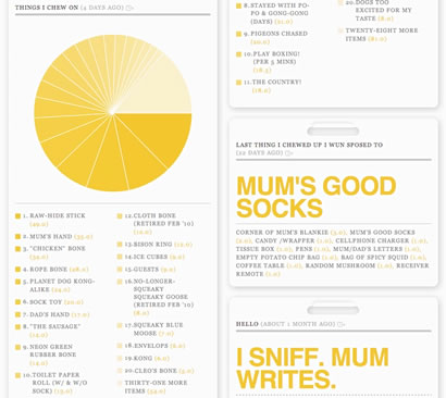 Felton successfully create something interesting and innovative out of things most people find mundane and often discard as useless. His elegant visualizations can be had via the limited-edition, hand-signed and numbered books so you can physically hold these beautiful visualization up close. (p.s.: The 2009 Annual Report is sold out, selling like hot cakes. It’s OK, I’m waiting for the 2010 report.)